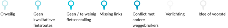 In totaal werden 229 punten geplaatst met het onderwerp 'Geen kwalitatieve fietsroutes'.